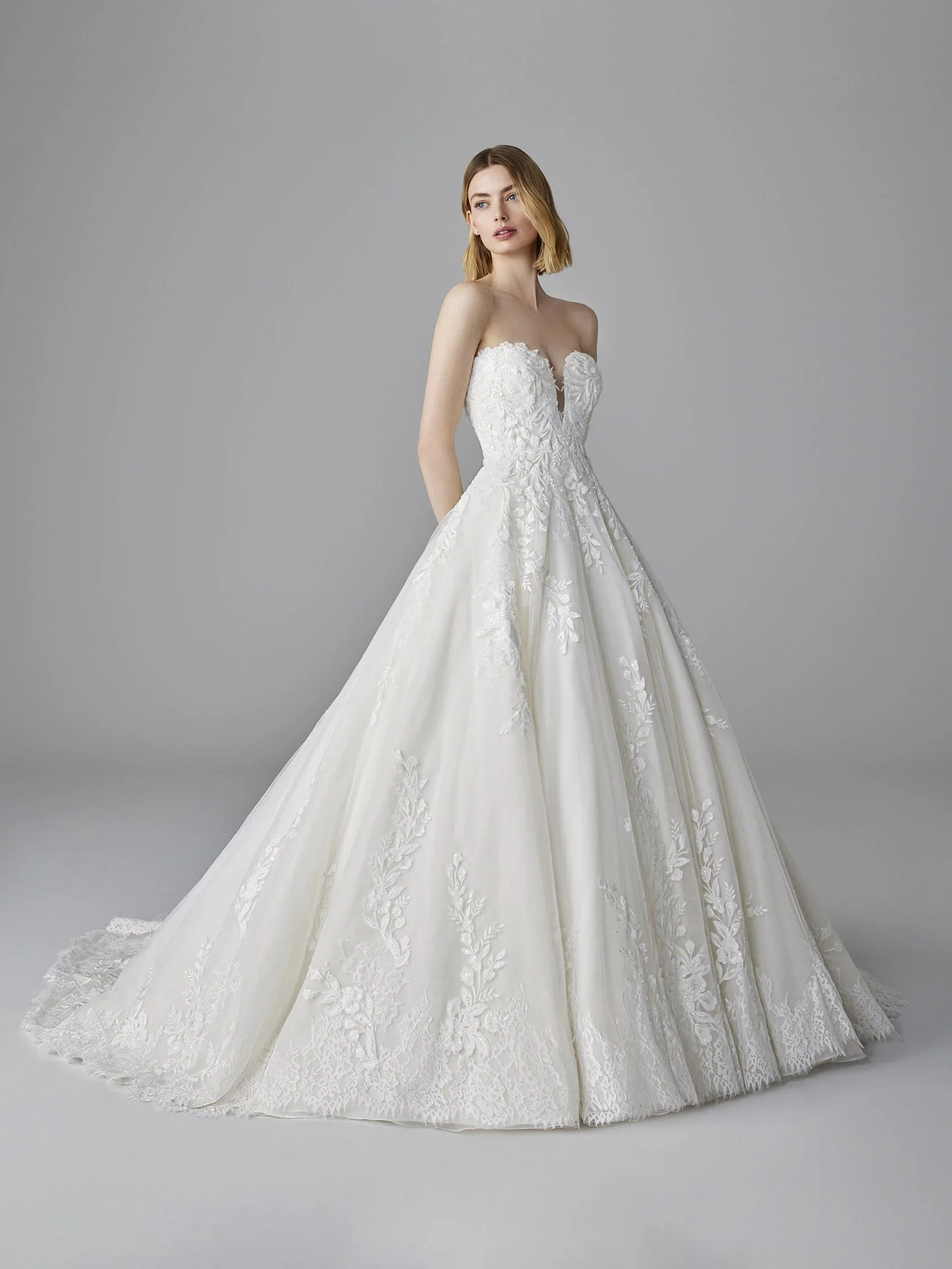 Pronovias has been an industry leader in bridal fashion since 1922! Their rich history of stunning designs runs through all of their stunning dresses. From the patterns to the fit and fabrics, Pronovias is not only synonymous with gorgeous designs, but also with exceptional quality.